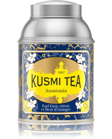 Inspired by the story of the Grand Duchess Anastasia, daughter of the Romanov dynasty’s Czar Nicholas II, this exclusive Earl Grey blend exemplifies Kusmi’s famous Russian taste with its combination of black tea, bergamot, lemon and orange blossom. Kept secret since its creation, Anastasia is one of the iconic recipes created by Pavel Kousmichoff.